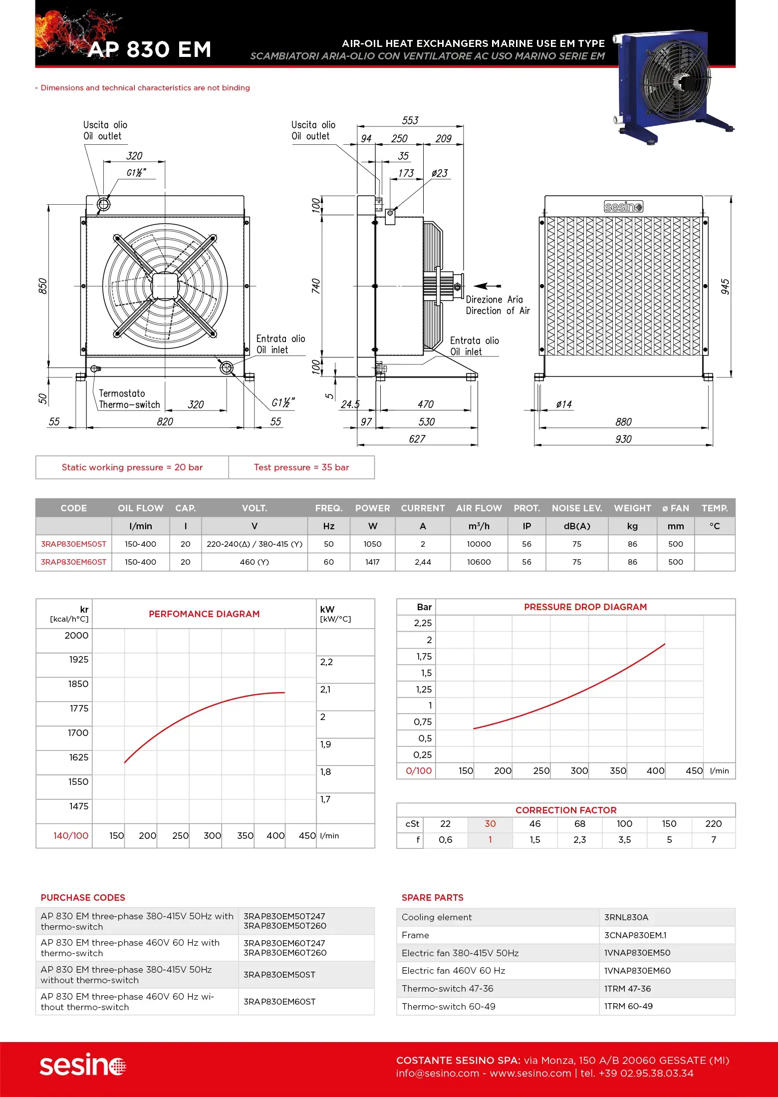 Pressione massima statica di funzionamento: 20 bar; pressione di collaudo: 35 bar.